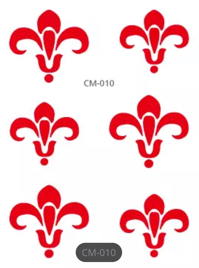 唐代に流行した、中国版ビンディ。 額に貼るタトゥーシールです。 大(幅2.5cm) ×3 小(幅2cm) ×3