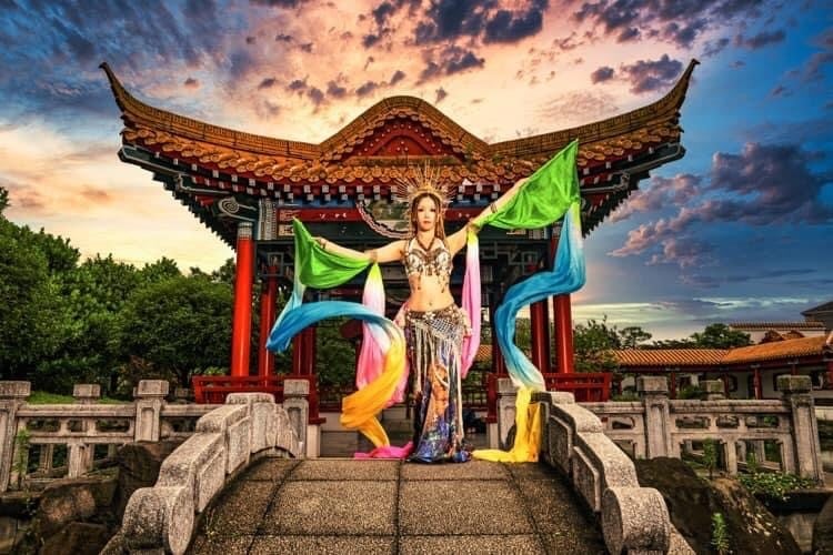 飛天舞に使用される全長12mのシルクベール。